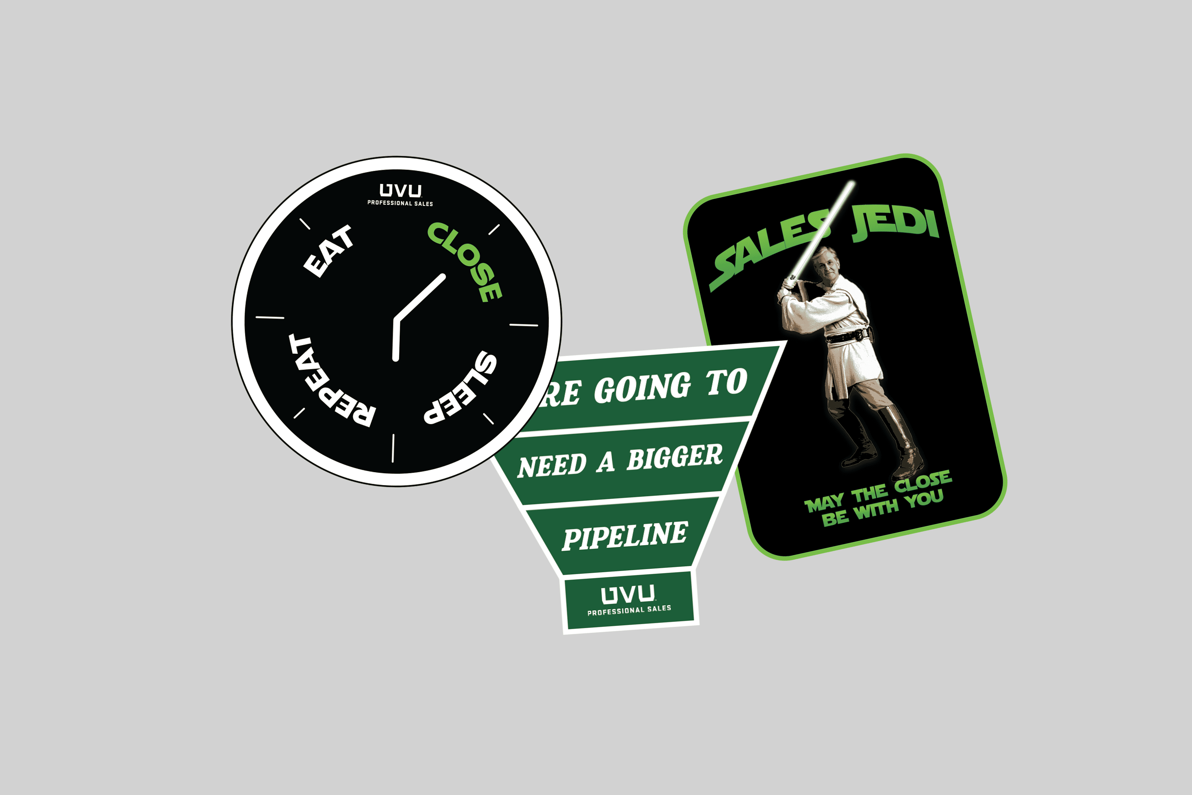 This project involved designing merchandise for the UVU Sales Degree campaign, focusing on creativity and brand alignment.The main T-shirt design playfully aligns with the brand, showcasing the benefits of the degree. Each piece in the collection reflects the brand’s identity while adding personality and a touch of fun, making the merchandise appealing and engaging for the target audience.
